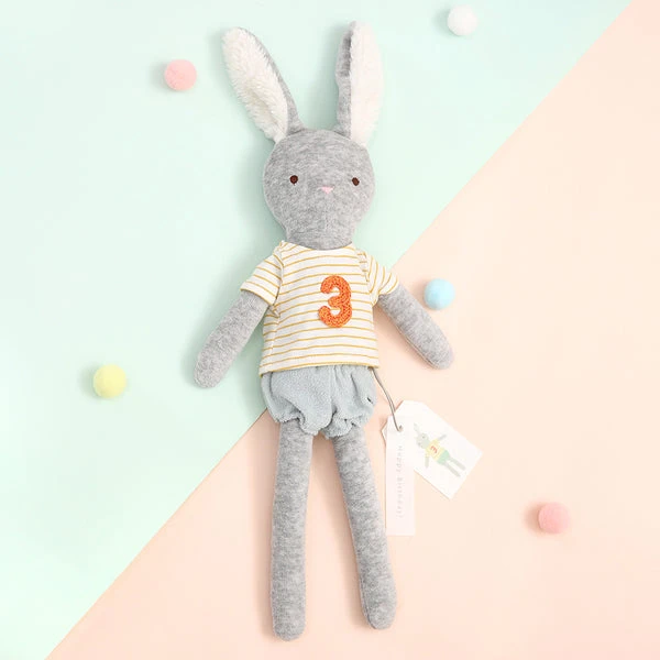Made from a soft snuggly fabric, this bunny’s top has a hand-crocheted number two and cute matching organic towelling bottoms.
