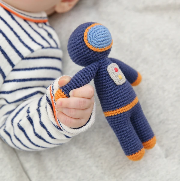 This Albetta Crochet astronaut Rattle Toy comes in one size and is made from 100% cotton thread and 100% polyester fibre filling.