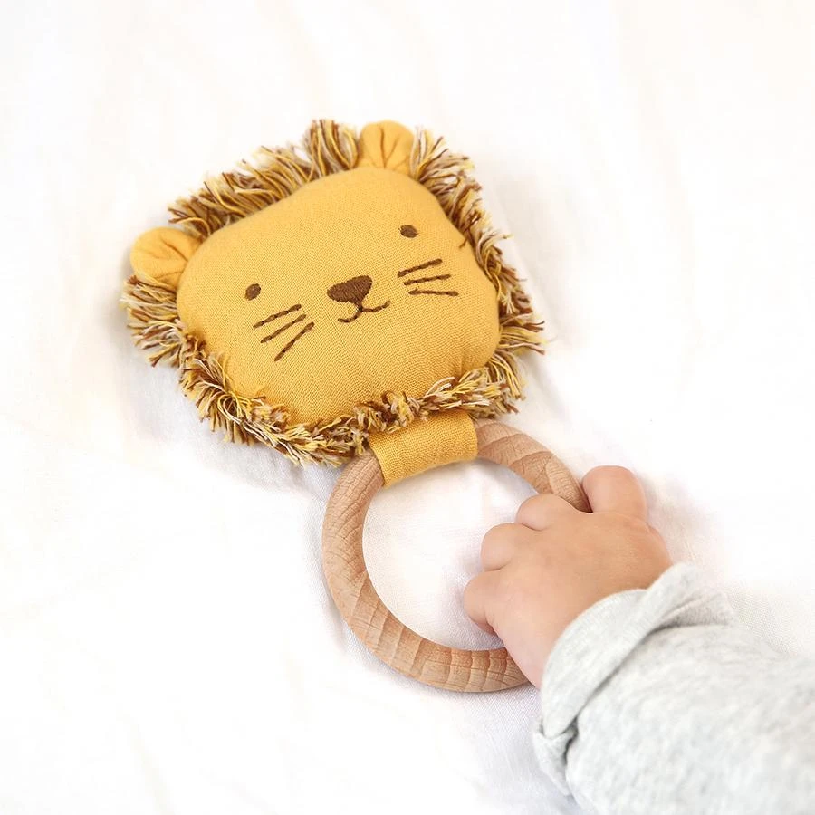 Sonaglio in mussola bio, realizzato a mano – Leone Dettagli: fatto a mano da artigiani prodotto in Vietnam materiale: legno di acero e 100% mussola di cotone bio, imbottitura di poliestere