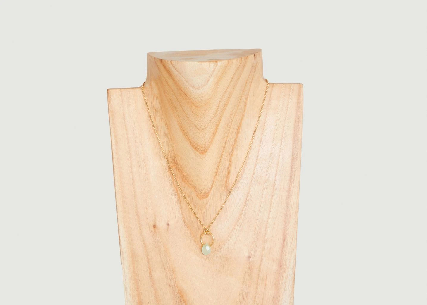 Fine necklace gilded with 24 carats gold:• Thin chain• Light green opal• Round ring• Adjustable length from 37 to 47 cm• Pendant length approx. 1.7 cm