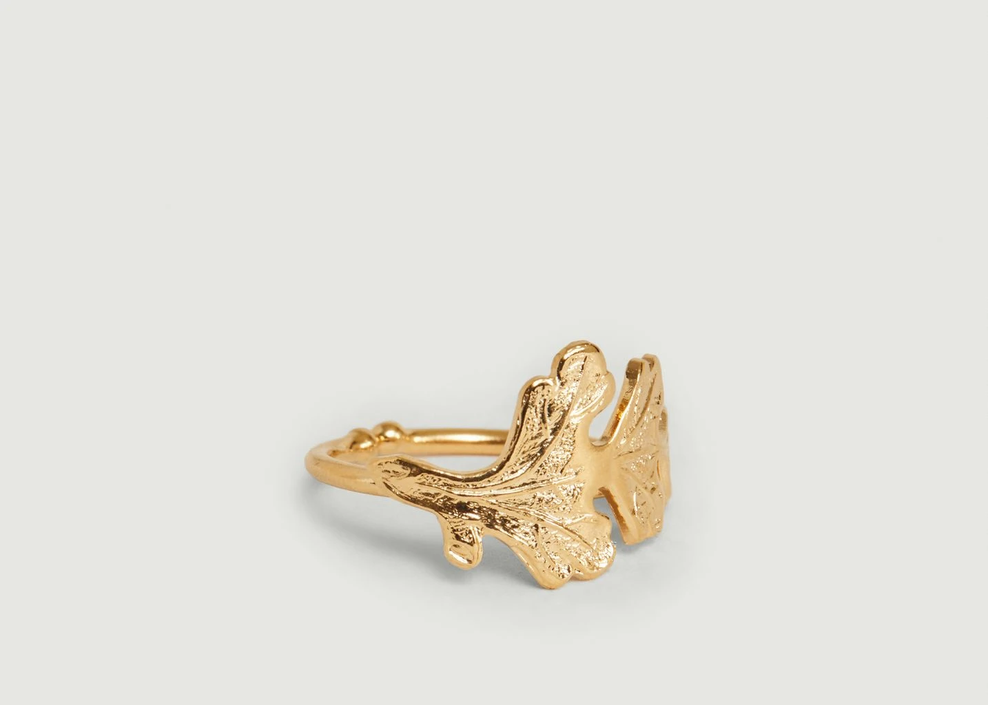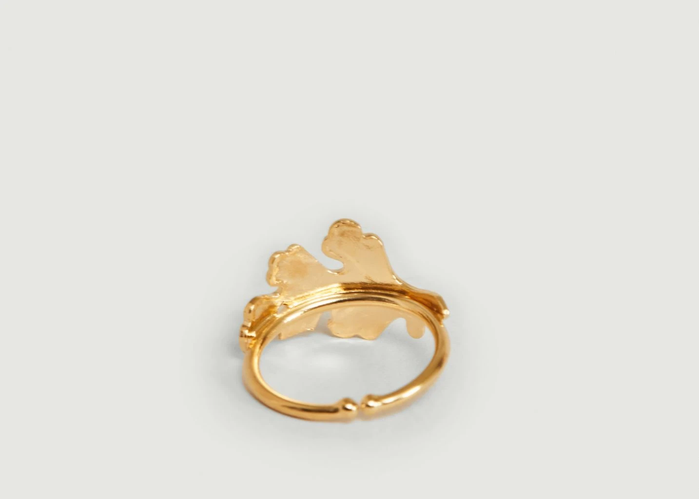 Small Windsor ring, in 24 carat gold-plated brass, decorated with leaf motifs, adjustable size. Jewel handmade in Paris. In keeping with the spirit of the Windsor collection, this ring inspired by Antiquity will sublimate your hands with imperial gold!