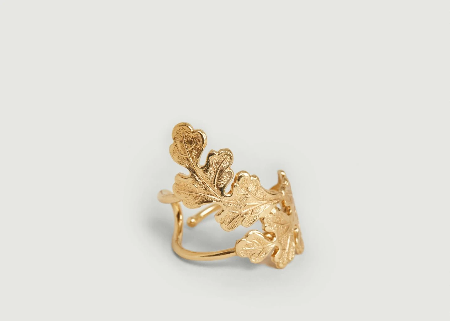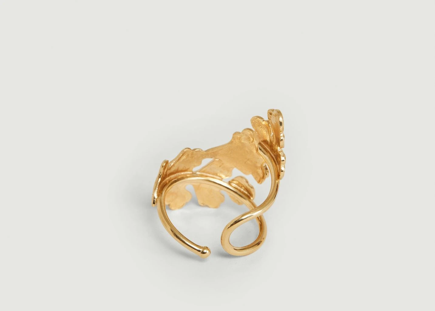 Windsor maxi ring, in 24 carat gold-plated brass, decorated with leaf motifs, adjustable size. Jewel handmade in Paris. In keeping with the spirit of the Windsor collection, this ring inspired by Antiquity will sublimate your hands with imperial gold!