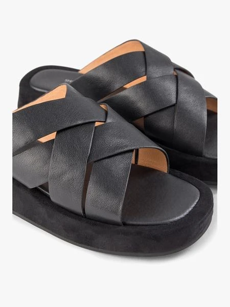 The Astrid Mule from Shoe the Bear shows off a cross design and a platform sole. Made in a black soft leather and suede these sandals are both practical and elegant. Pair with your favourite dresses for a smart casual look. Crisscross design Platform sole 3.5cm high Suede trimming Composition: 100% Leather
