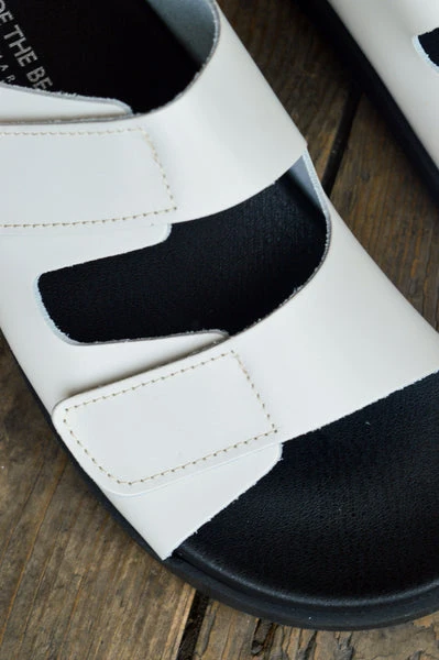 Fern is a classic and fashionable sandal. She has two adjustable leather straps with velcro closure across the foot. Style them with a pair of mom jeans or a favorite summer dress.