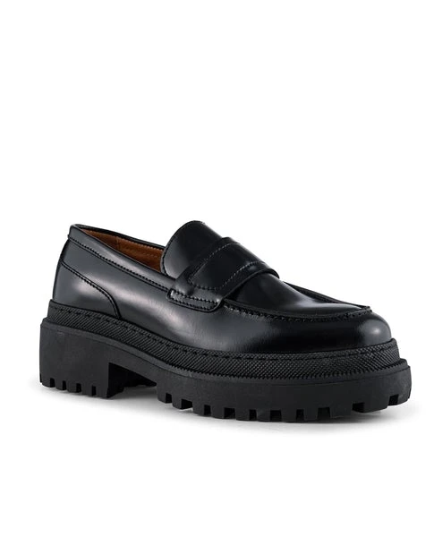 Shoe The Bear Iona Black Loafers, a chunky black pair of leather shoes with thick black rubber sole. A casual yet edgy loafer to slip on all year round for work or casually. 100% Leather with rubber sole Leather care recommended True to size Made in Portugal
