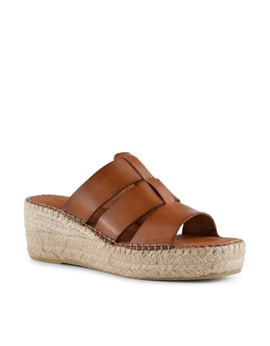 – Slip on espadrille – Three strap leather upper – Braided sole – Tan – Heel approx 6.5cm – SHOE THE BEAR RD Size: 7