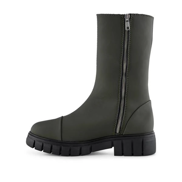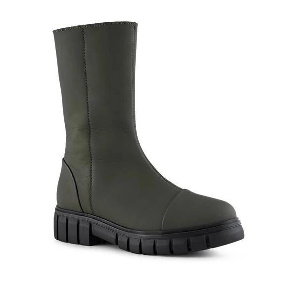 The Rebel High Shaft is a high shaft boot made of 100% trendy matte leather in khaki. Handmade in Portugal, it has a distinctive and shock-absorbing track sole that guarantees you plenty of stability. The durable sole is composed of 70% recycled rubber. The Rebel High Shaft is finished with an inside zip, making the boot easy to put on. With the Rebel High Shaft, you’re guaranteed a comfortable boot with lots of personality. Lining: 100% leather Recycled rubber outsole Heel height: 4 cm Shaft height: 22.5 cm Made in Portugal