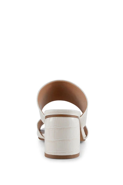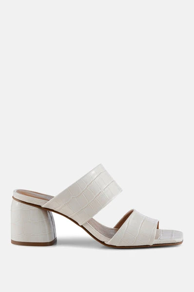 Runa is our favourite classic mule. She combines summer vibes and beauty with a square toe and and faux white croc leather giving it a simple and classy look. If the shoes are dirty, wipe them with a moist cloth. Never soak the shoes and do not use any chemicals to clean them. 3” heel Lining 100% Leather, Outersole 100% synthetic leather