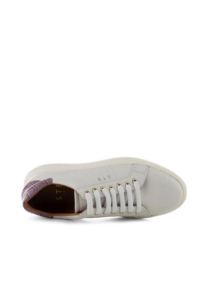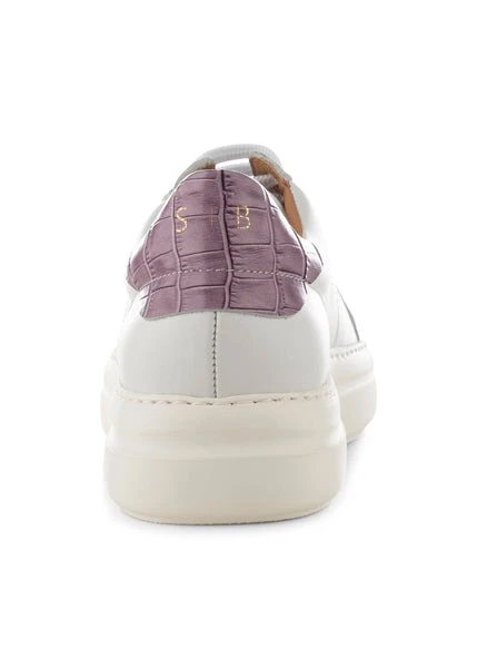 STB Valda Sneaker Leather – White/Lavender Croco Valda is our classic sneaker combining sporty functionality and feminine details. The sneaker is made in Portugal from smooth leather with a contrasting heel. Valda has shoelaces on the front, printed details at the side and heel, elegant stitching as well as a light EVA sole. STB2122