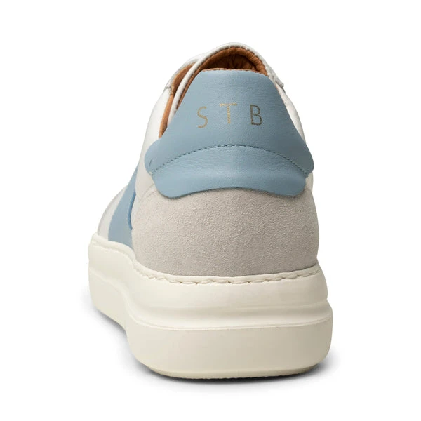 Shoe The Bear Valda Sneaker Suede Leather – White/Blue Multi Valda is our casual sneaker combining sporty functionality and classic simplicity. The sneaker is made in Portugal in a combination of leather and delicate suede. Valda has shoelaces on the front, printed details at the side and heel as well as an embossed EVA sole which emphasises the textured details of the shoe.