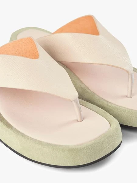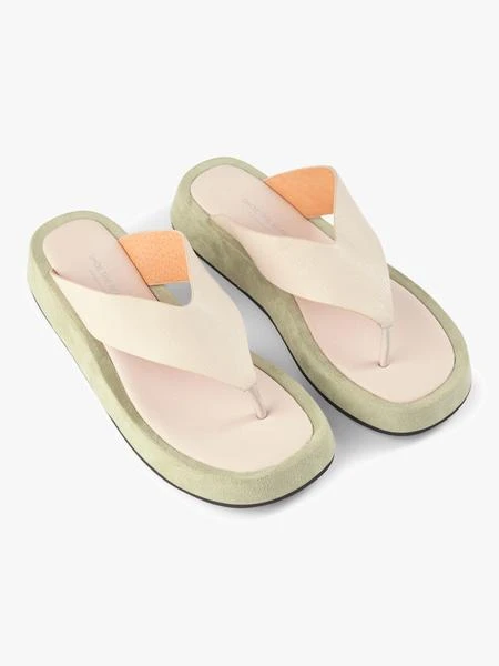 The Astrid Thong from Shoe the Bear is both practical and elegant. Designed with a soft cream leather and a contrasting suede green platform sole. Pair with your favourite dresses for a smart casual look. Thong design Soft leather Platform sole 3.5cm high Suede trimming Composition: 100% Leather